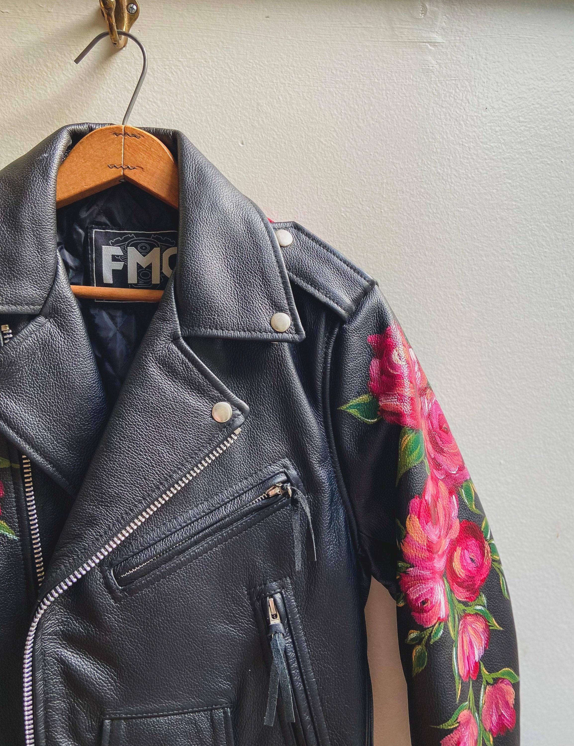 Painted Leather Biker Jacket Hand Painted Florals Etsy